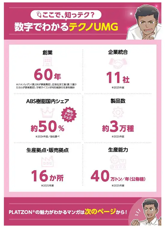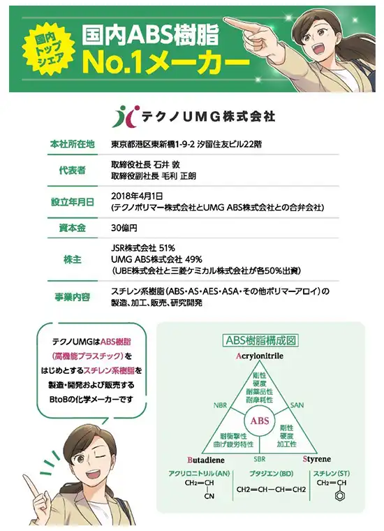 テクノUMG 様は主にABS樹脂を中心とした各種スチレン系樹脂を製造している化学メーカー。