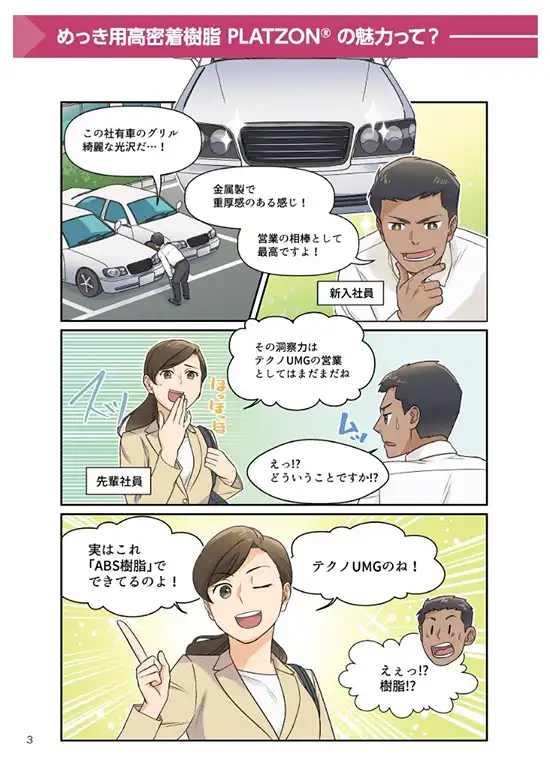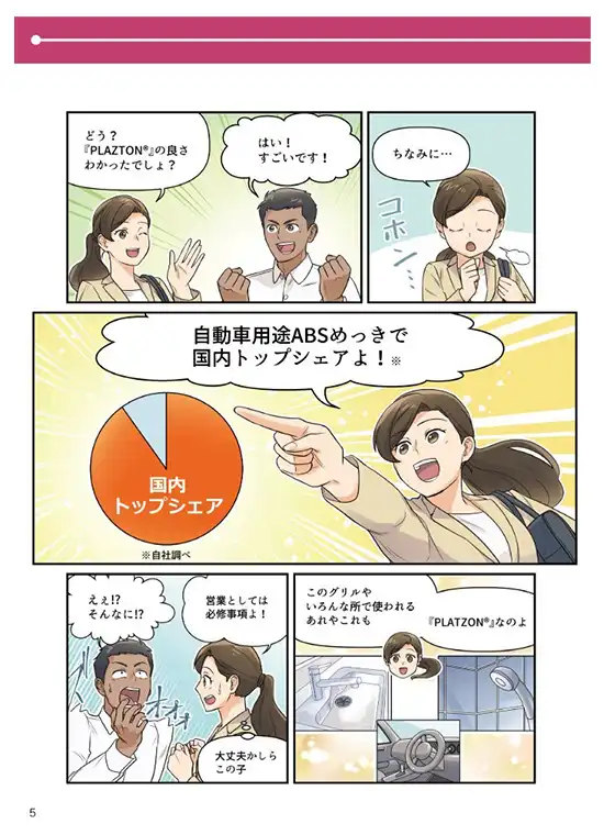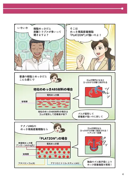 自動車用途ABSめっきで国内トップシェア(※自社調べ)である点と、商品の『PLATZON®』の技術を紹介する小冊子を作成しました。