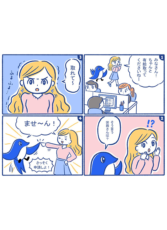 企業の「管理部門あるある」をネタにした楽しい4コマ漫画も作成。